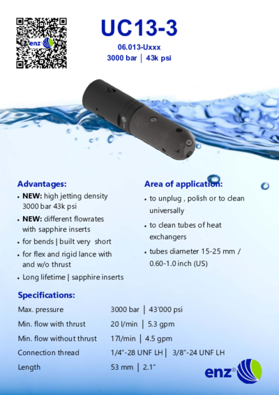 UC13, 3000 bar/ 43'000 psi |